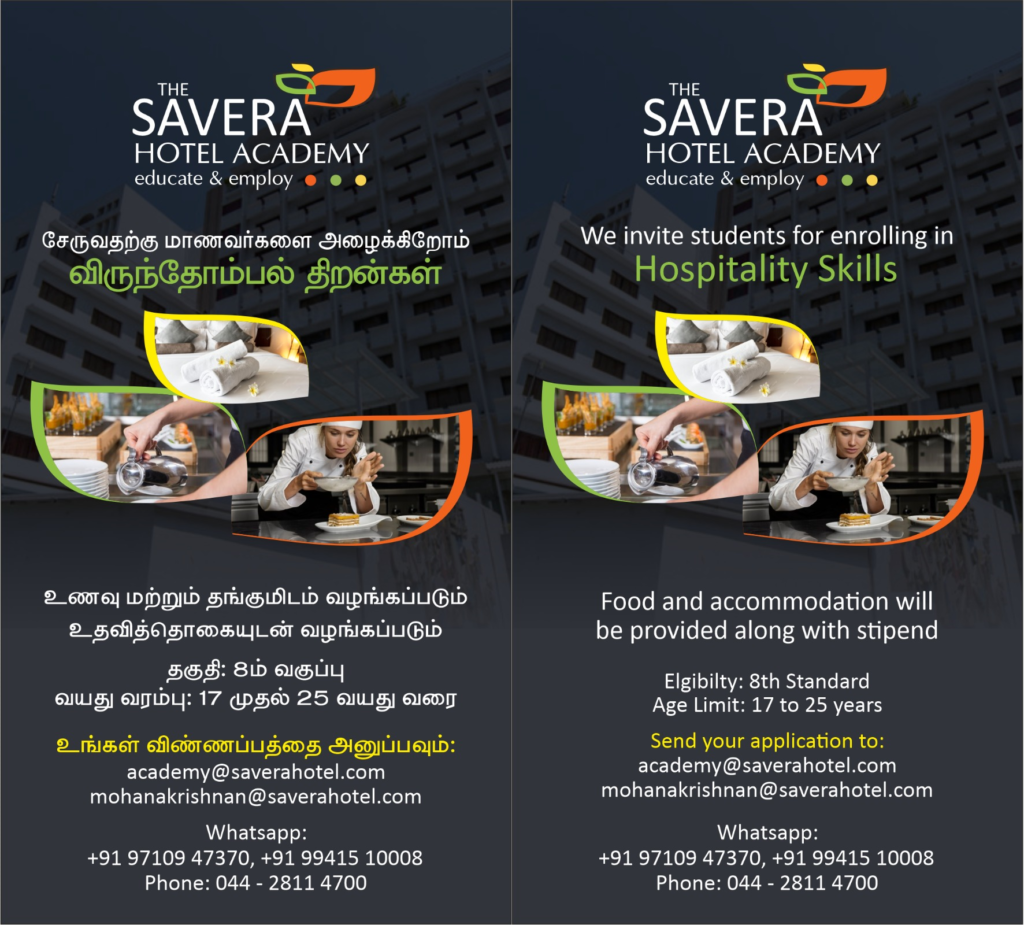 Savera Hotel Academy offers professional training and employment in Hospitality sector.